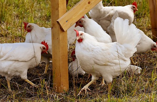 El tipo más común de granjas avÃcolas genera pollos. Los pollos pueden ser cultivados para sus huevos o carne.