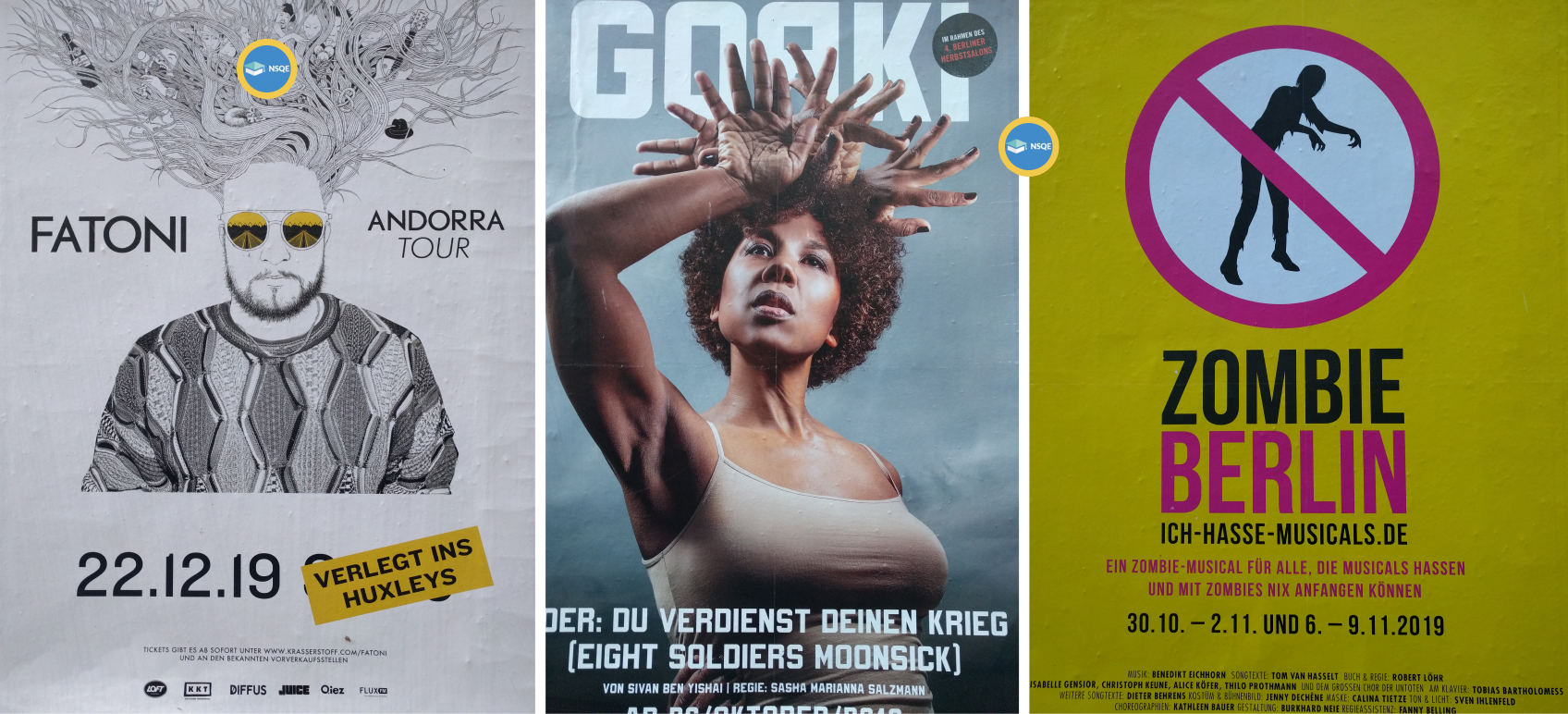 Publicidades gráficas vistas en la vía pública en la ciudad de Berlin durante la #rutansqe en noviembre 2019.